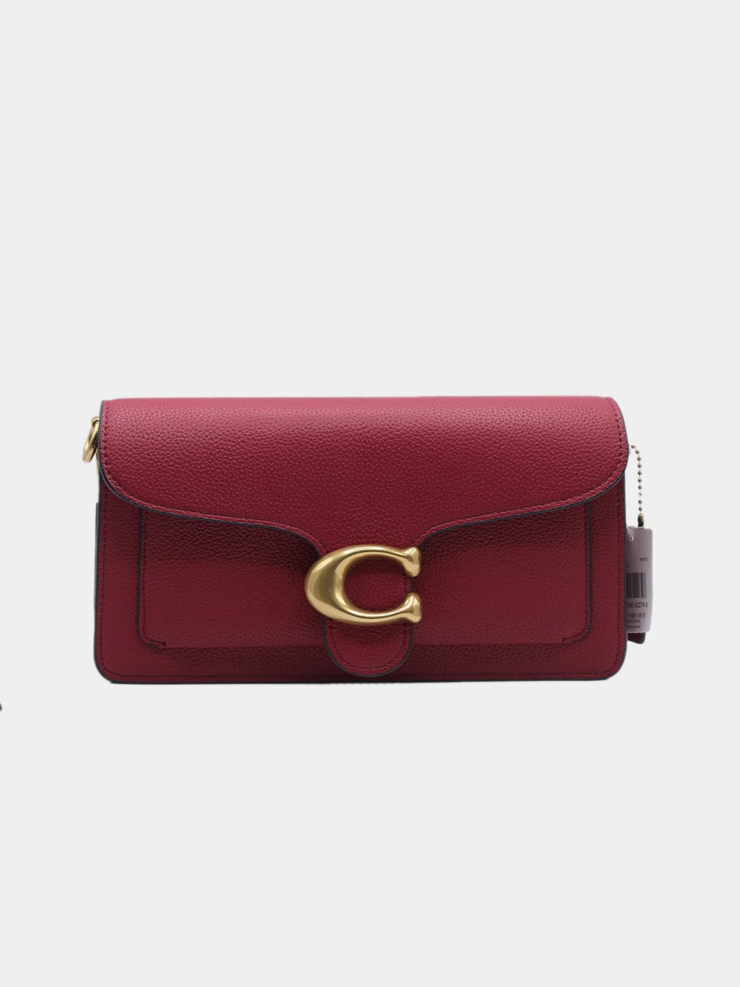 Elevate your style with the iconic Coach Tabby Shoulder Bag 26 in a rich, beautiful red. This versatile bag is crafted from refined pebble leather, offering a luxurious feel and a structured silhouette that holds its shape beautifully. The standout gold-tone C hardware on the front flap adds a touch of classic sophistication.
