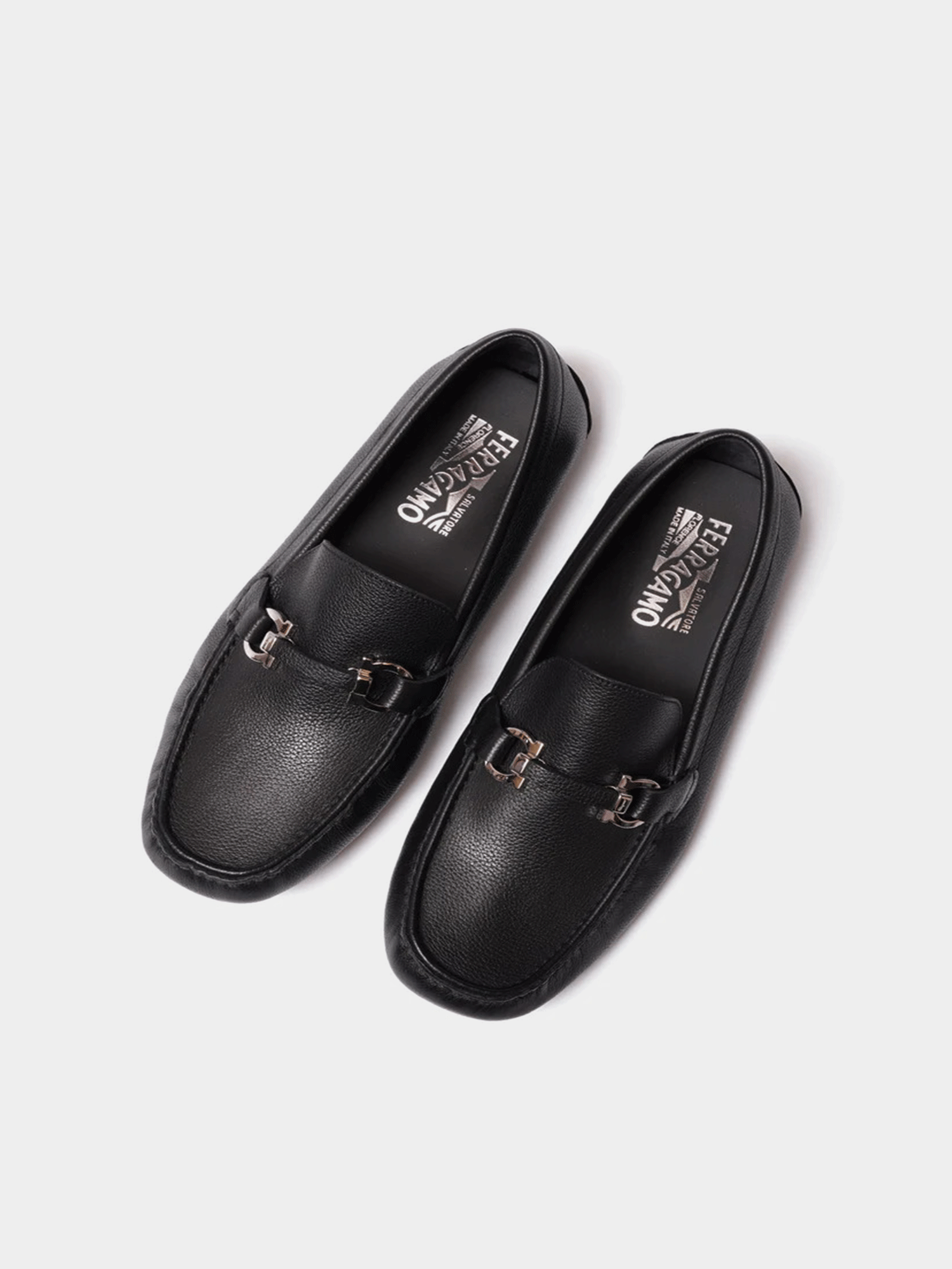 Salvatore Ferragamo Salamanca Nero Pebble Calf Loafers - Black