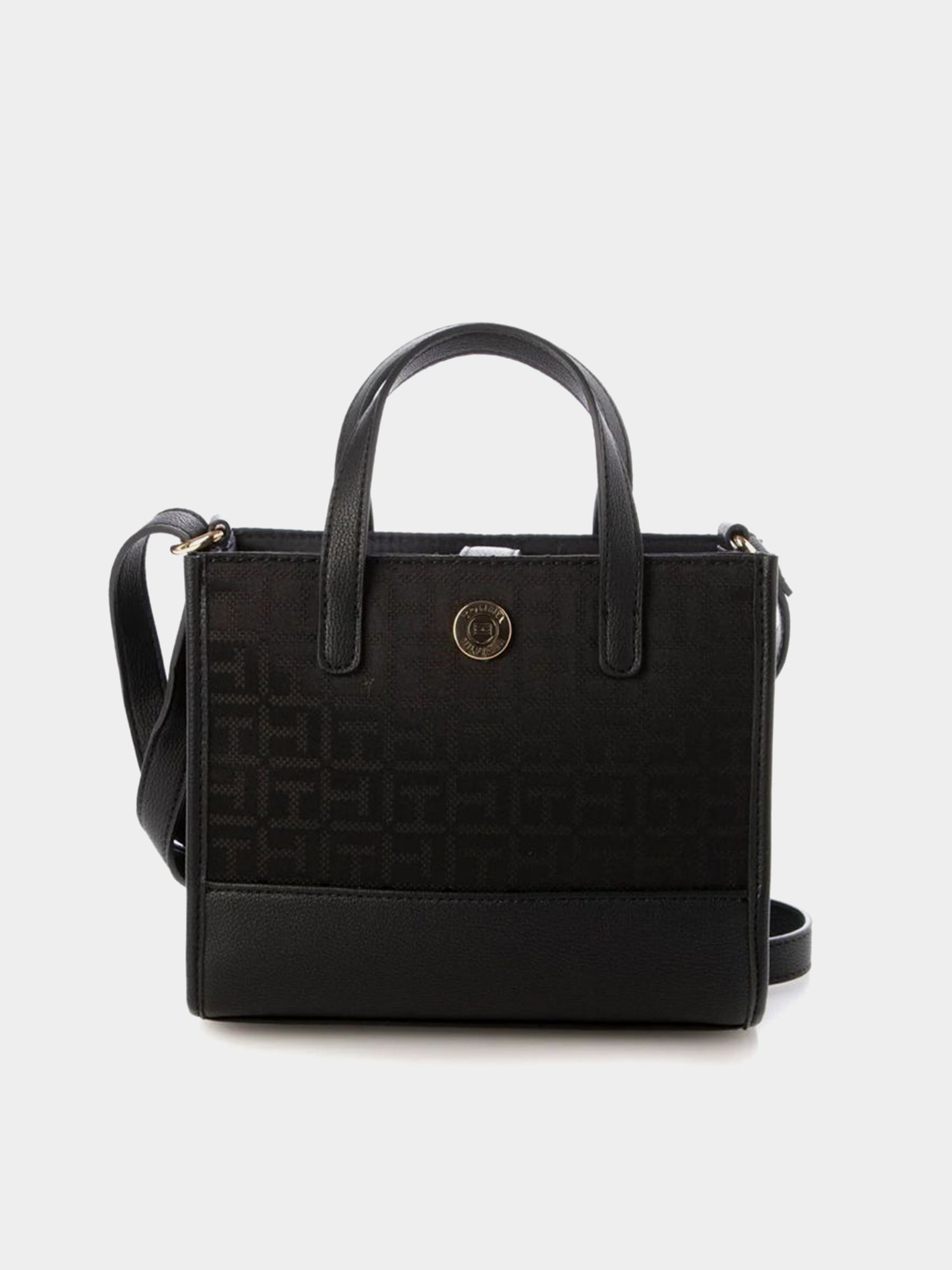 Designed with both style and function in mind, it includes dual top handles for hand carry and a detachable, adjustable strap for crossbody or shoulder wear. A signature gold-tone TH logo medallion on the front adds a polished designer touch, making this bag suitable for workdays, weekends, and everything in between.